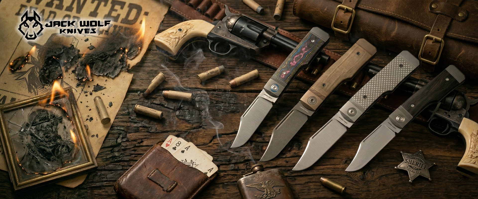 Jack Wolf Knives™ Gunslinger Gunstock GUNSL-03-CC-80S 80s CamoCarbon S90V Stainless Steel Pocket Knife