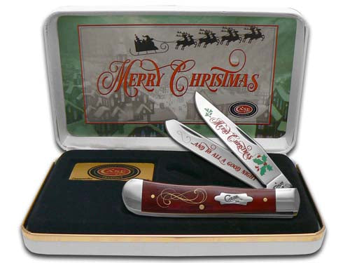 W.R. Case XX Knives Merry Christmas Smooth Red Bone Trapper Stainless Pocket Knife CAT-MC/RSB