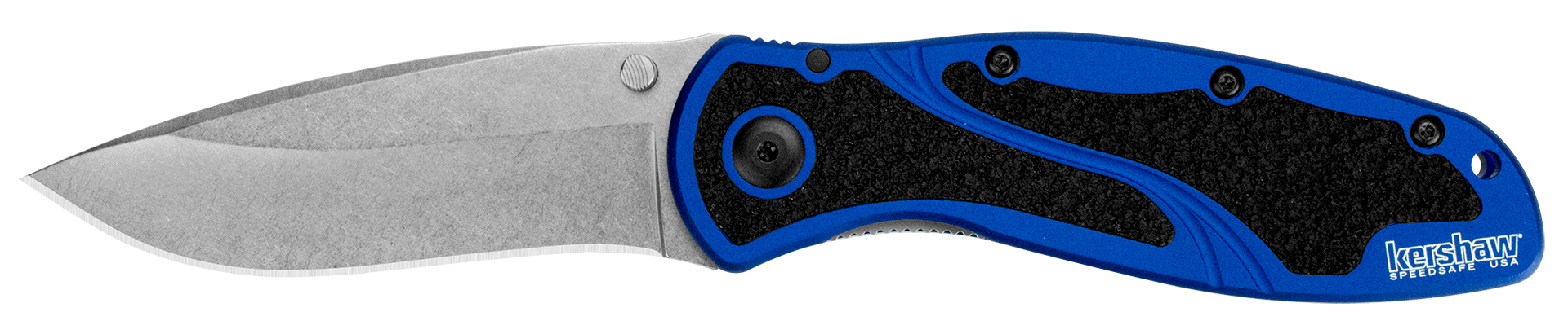 This Kershaw Knives Blur Liner Lock knife utilizes a 3 1/2" Locking Recurve Drop-point blade with plain edge, 3mm thickness, and Speedsafe spring aided thumb studs. The blade material is Sandvik 14C28N Stainless Steel with Stonewashed finish. The handle is Navy Blue Anodized Aluminum with Trac-Tec inserts, Lanyard Hole and directional Pocket Clip. It's around 4 1/2 inches long (folded/closed) and weighs approximately 3.9 ounces....