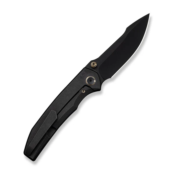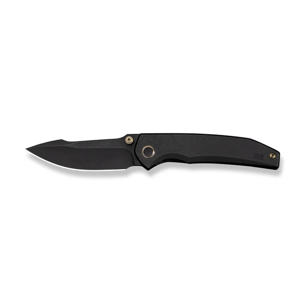 This WE Knife Co., Ltd Ryson Frame Lock knife utilizes a 3 3/8" Locking "Harpoon" Drop Point blade with a hollow grind, 3.2mm (0.13") thickness, swedge, forward thumb ramp, and thumb studs. The blade material is M390 Stainless Steel (59-61HRC) with a Black Stonewashed finish. The handle is Black Anodized 6AL4V Titanium with a finger groove/guard and right-carry tip-up Titanium pocket clip. It's around 4 3/8 inches long (folded/closed) and weighs approximately 3.1 ounces. Handcrafted in China, this knife comes complete with Limited Lifetime Manufacturer's Warranty, Storage Pouch and Box.