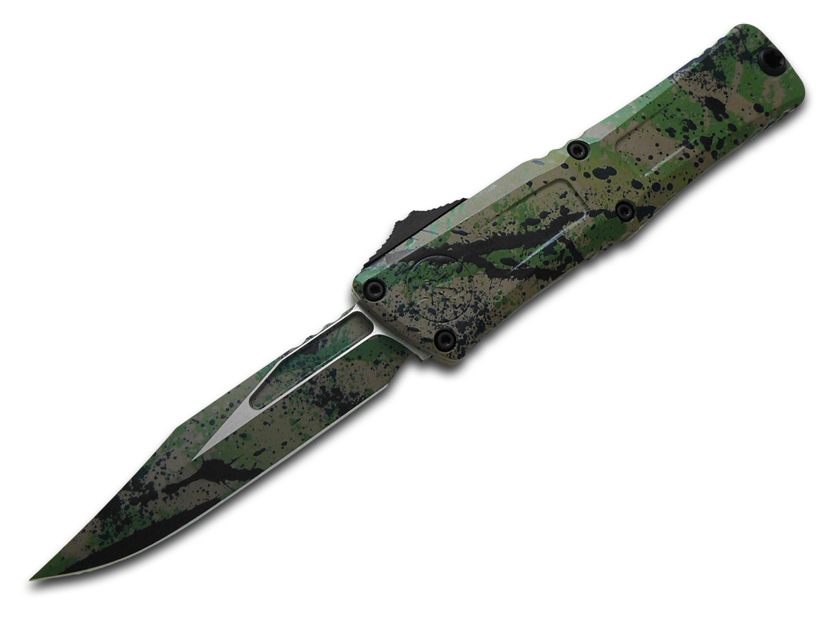 Microtech Knives, LLC™ Combat Troodon Gen 3 OTF 1146-1ODTA BKSPLS Black Splatter Camo 7075-T6 Aluminum M390MK Stainless Steel Pocket Knife