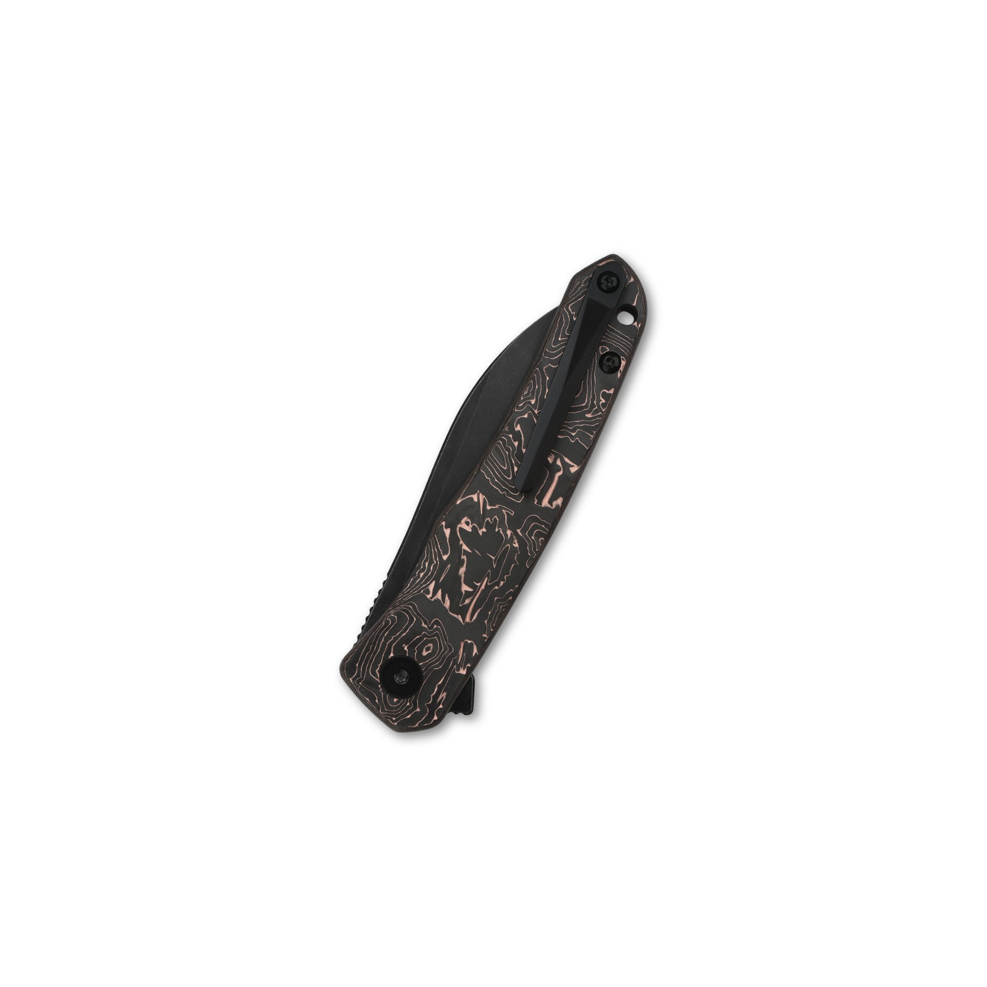This QSP Knives Otter Liner Lock knife utilizes a 2 3/4" Locking Sheepsfoot blade with a plain edge, 3mm thickness and finger lever. The blade material is CPM S35VN Stainless Steel with a Black Stonewashed finish. The handle is Copper Carbon Fiber with a lanyard hole and removable tip-up pocket clip. It's around 3 3/4 inches long (folded/closed) and weighs approximately 2.6 ounces. Handcrafted in China, this knife comes complete with Limited Lifetime Manufacturer's Warranty, a Padded Presentation Box.