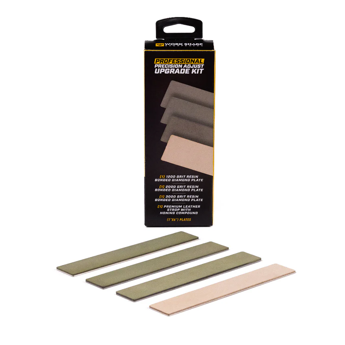 This kit fits the Professional Precision Adjust (WSBCHPAJ-PRO) sharpener only. The Work Sharp Professional Precision Adjust Upgrade Kit enhances your sharpening system, delivering sharper, smoother, and more polished edges than ever before. Designed exclusively for the Professional Precision Adjust Knife Sharpener, this kit makes achieving mirror-polished bevels and surgically sharp edges effortless. Whether you�re a chef, collector, or outdoor enthusiast, it refines every blade to perfection�ensuring your tools perform at their absolute best. This kit includes 1200 Grit Resin Bonded Diamond Plate, 2000 Grit Resin Bonded Diamond Plate, 3000 Grit Resin Bonded Diamond Plate, and Premium Leather Strop with 0.5-micron Chromium Oxide Honing Compound.