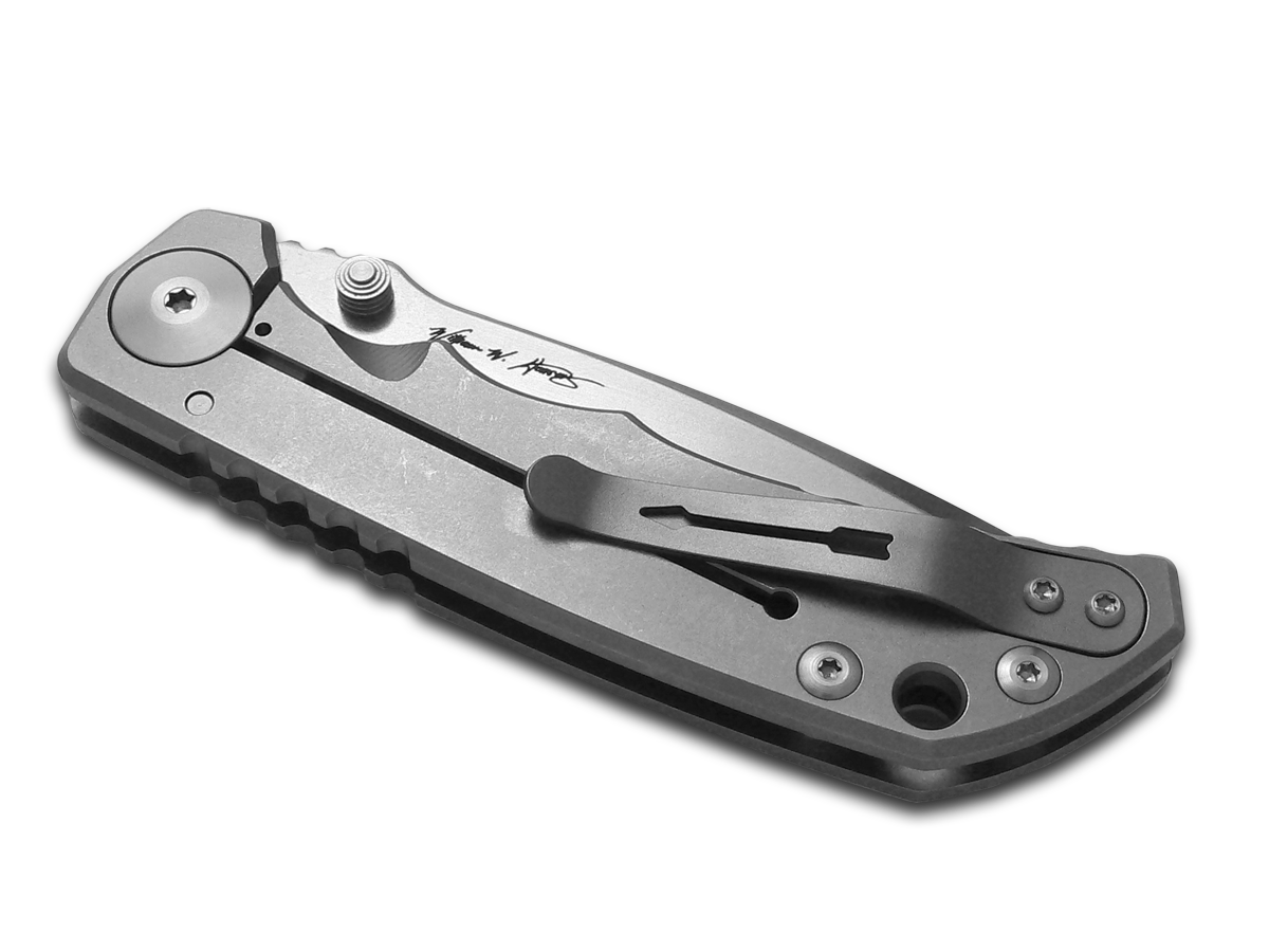 This Spartan Blades, LLC Harsey Folder Frame Lock knife utilizes a 4" Locking Drop Point blade with a plain edge, swedge, 3.8mm thickness, thumb studs, and thumb ramp jimping. The blade material is 'Double Deep' Cryo-treated CPM MagnaCut Stainless Steel (61-63 HRC) with a Stonewashed finish. The contoured handle is Polished 6AL4V Titanium with jimping, a lanyard hole and reversible tip-up pocket clip. It's around 4 3/4 inches long (folded/closed) and weighs approximately 5.9 ounces.... Read Less