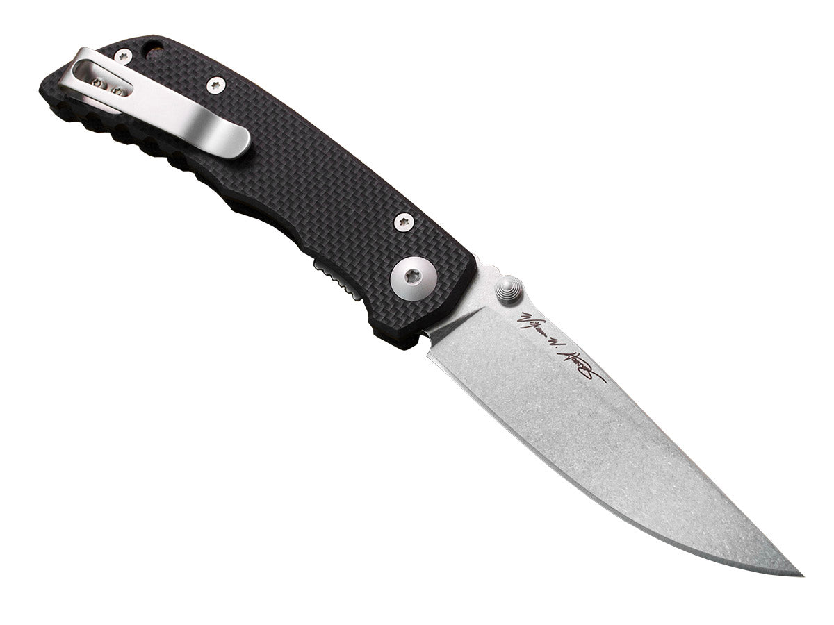 This Spartan Blades, LLC Talos Liner Lock knife utilizes a 3 1/4" Locking Straight-back blade with a plain edge, flat grind, 3mm thickness, spine jimping and thumb studs. The blade material is CTS-XHP Stainless Steel (58-60HRC) with a Tumbled finish. The contoured handle is textured Black G10 with a lanyard hole and removable right-carry tip-up pocket clip. It's around 3 7/8 inches long (folded/closed) and weighs approximately 2.4 ounces.