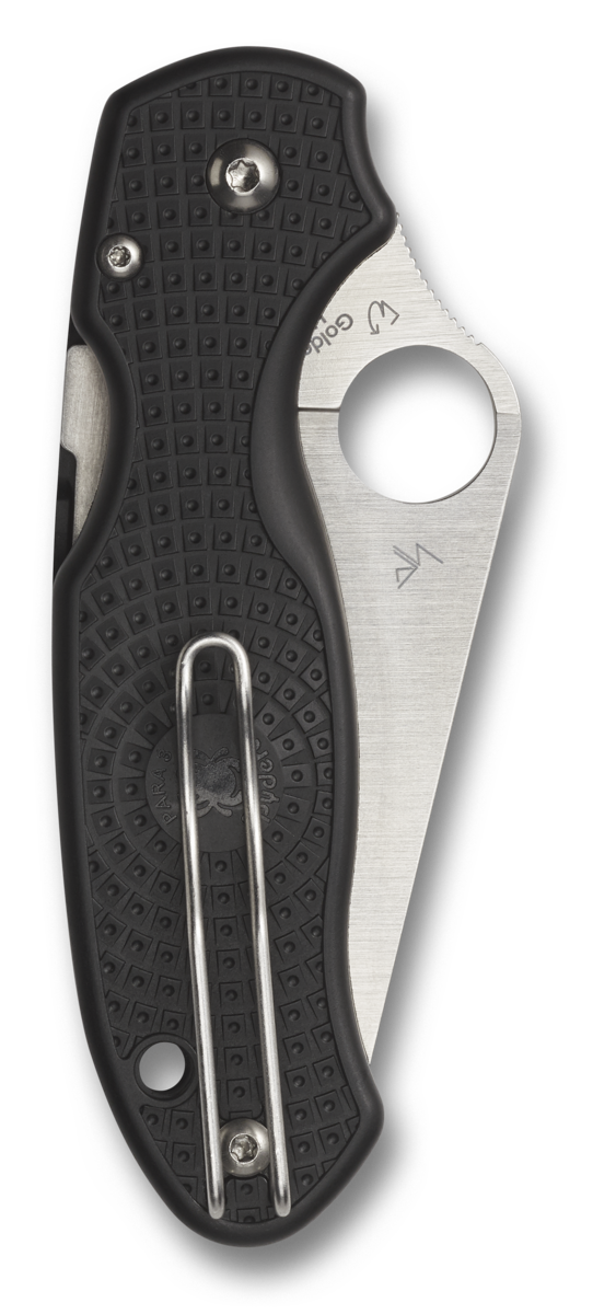 This Spyderco Knives Para 3 Compression Liner Lock knife utilizes a serrated 3" Locking Drop Point(w/Thumb Hole) blade. The blade material is CTS BD1N Stainless Steel. The handle is Black Fiberglass Reinforced Nylon with Non-Slip Bi-Directional Texturing Grip, Reversible Wire Pocket Clip, and Lanyard Hole. It's around 4 3/8 inches long (folded/closed) and weighs approximately 2.4 ounces....