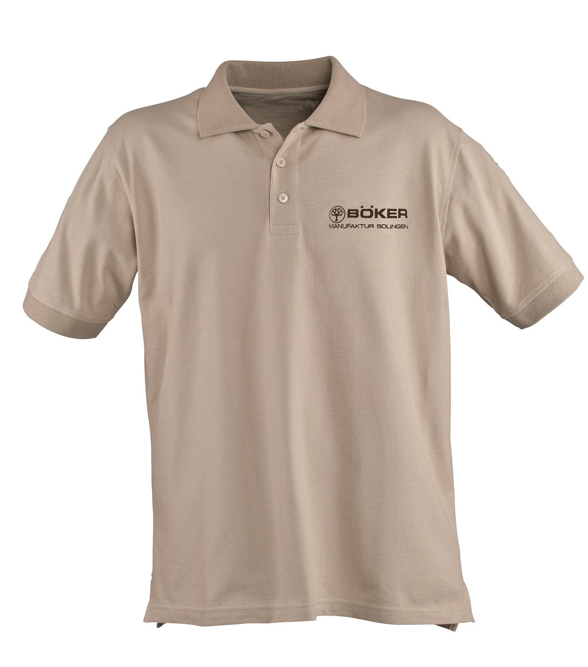 This high quality, desert tan Boker Polo Shirt was developed by Böker Tree Brand Knives. It is made from high-quality 100% Cotton and measures a Medium. This BOKER TREE BRAND Boker Polo Shirt features a reinforced collar and embroidered Boker Logos on the chest and sleeve.