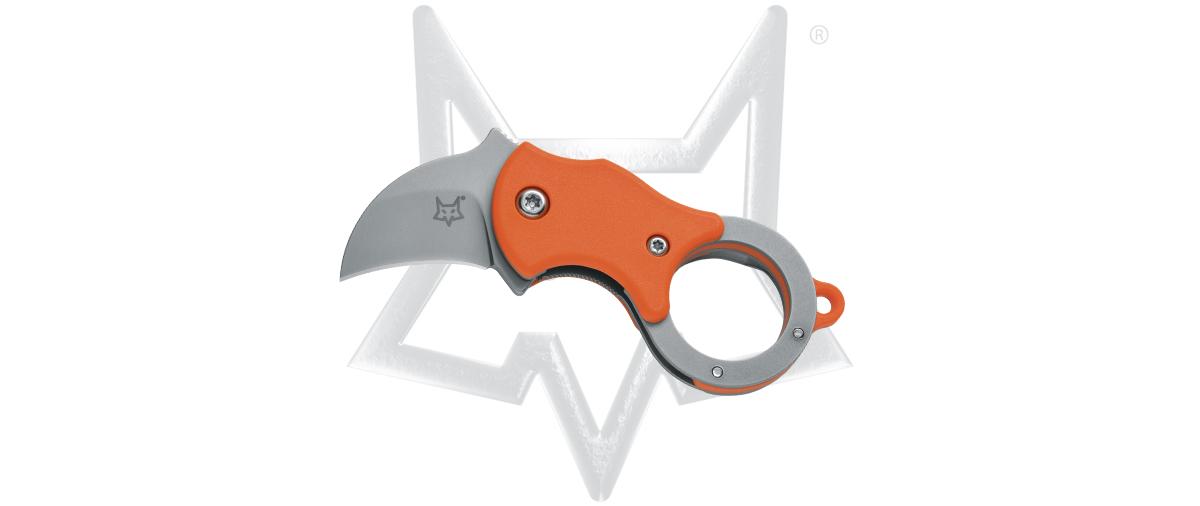 This Fox Knives Mini-Ka Liner Lock knife utilizes a 1 " Locking Hawkbill blade with a plain edge, 2.5mm thickness and finger lever. The blade material is 1.4116 Stainless Steel with Bead-blasted finish. The handle is Orange FRN with a finger ring, tip-up pocket clip and key chain hole. It's around 2 1/8 inches long (folded/closed) and weighs approximately 1.1 ounces. Handcrafted in Italy, this knife comes complete with Limited Lifetime Manufacturer's Warranty, a 'Mini-Ka' Key Ring.