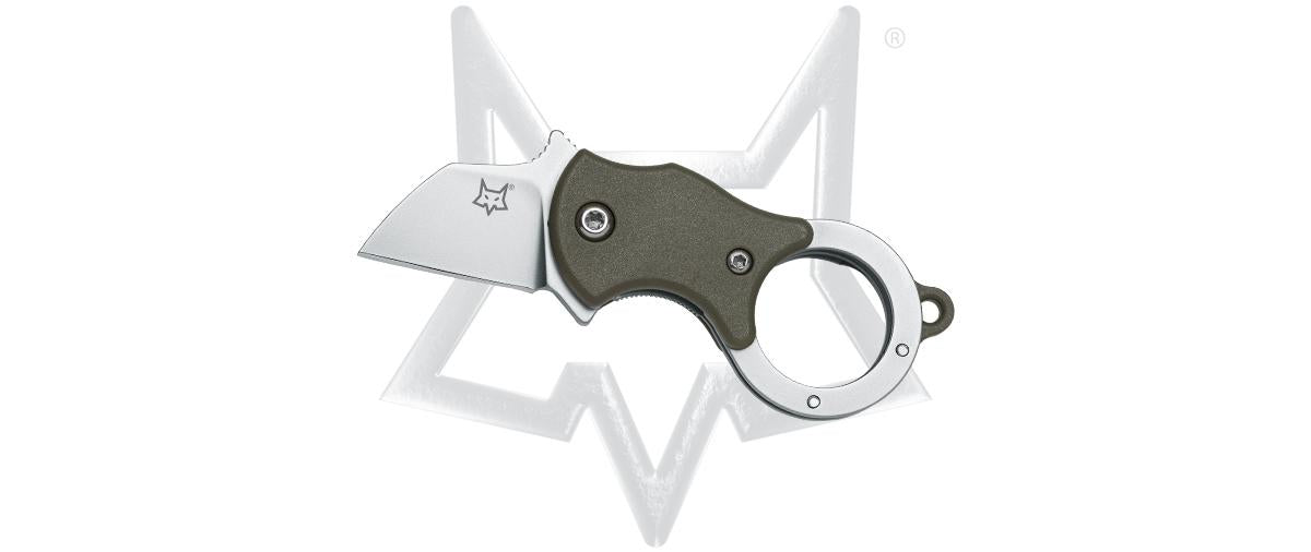 This Fox Knives Mini-Ta Liner Lock knife utilizes a 1 " Locking Wharncliffe blade with a plain edge, 2.5mm thickness, and finger lever. The blade material is 1.4116 Stainless Steel with Bead-blasted finish. The handle is Olive Drab Green FRN with a finger ring, tip-up pocket clip and key chain hole. It's around 2 3/8 inches long (folded/closed) and weighs approximately 1.1 ounces. Handcrafted in Italy, this knife comes complete with Limited Lifetime Manufacturer's Warranty, Mini-Ta Key Ring....