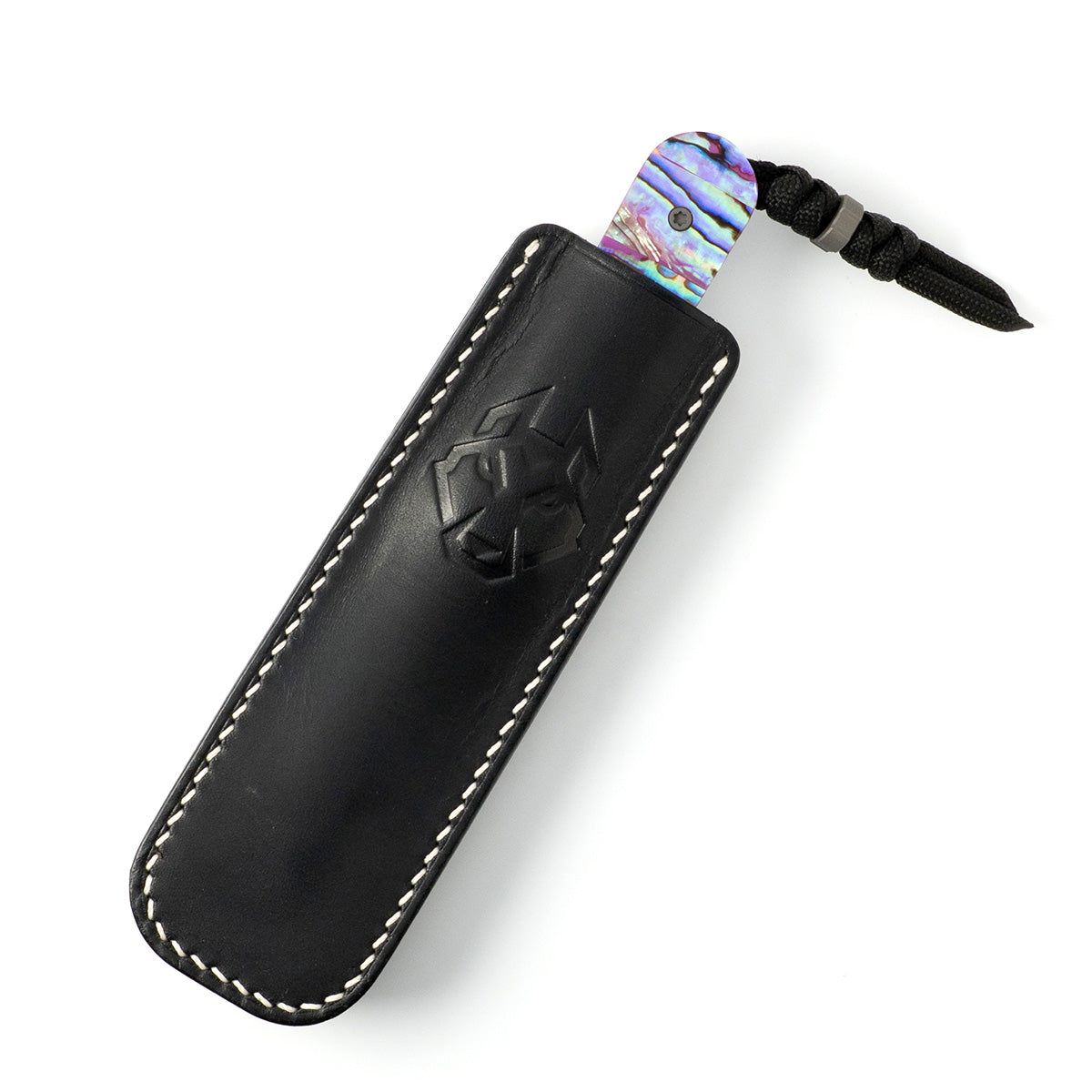 This Jack Wolf Knives Backwoods FIXedc knife utilizes a 3" Clip Point blade with a hollow grind plain edge, swedge, and 3mm (0.12") thickness. The blade material is S90V Stainless Steel (60-61HRC) with a Belt Satin finish. The handle is Abalone intergrated into the full tang blade with a lanyard hole. The Fluted bolsters are Dark Blast Titanium. It's around 6 inches long (folded/closed) and weighs approximately 2.1 ounces. Handcrafted in China, this knife comes complete with Limited Lifetime Manufacturer's Warranty, Snake-Knot Paracord Lanyard with Dark Blast Titanium Bead, Black Leather Belt Sheath and VHS-style Presentation Box.