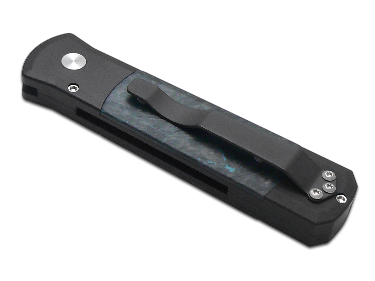 Pro-Tech Knives, LLC™ Godson Auto 7FC31 Black 6061-T6 Aluminum and Blue & Black Fat Carbon Fiber 154CM Stainless Steel Pocket Knife