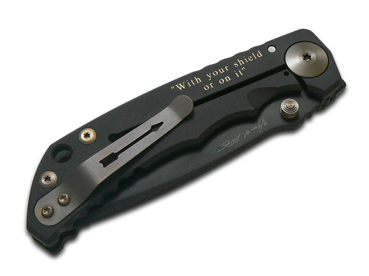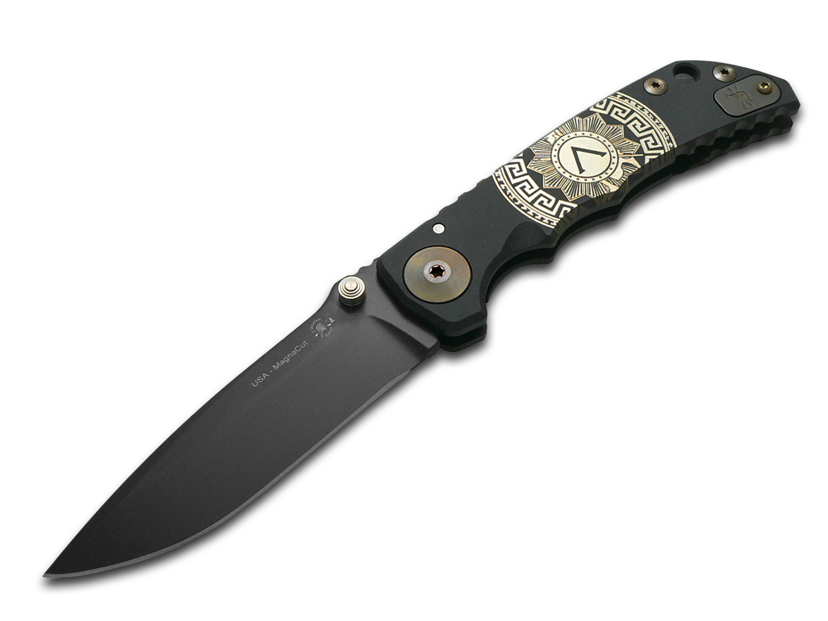 Spartan Blades, LLC™ Harsey Folder Frame Lock SF5GOLDSHIELD Black Anodized 6AL4V Titanium CPM MagnaCut Stainless Steel Pocket Knife