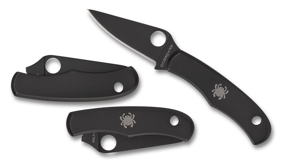 This Spyderco Knives Bug Slipjoint knife utilizes a PlainEdge 1 1/4" Drop Point blade with thumb hole. The blade material is 3Cr13 Stainless Steel with Blackened finish. The handle is Blackened Stainless Steel with Spyderco's "Bug" Logo etching and a hole for a Lanyard, Keychain, or Necklace. It's around 1 3/4 inches long (folded/closed) and weighs approximately 0.4 ounces.... Read Less
