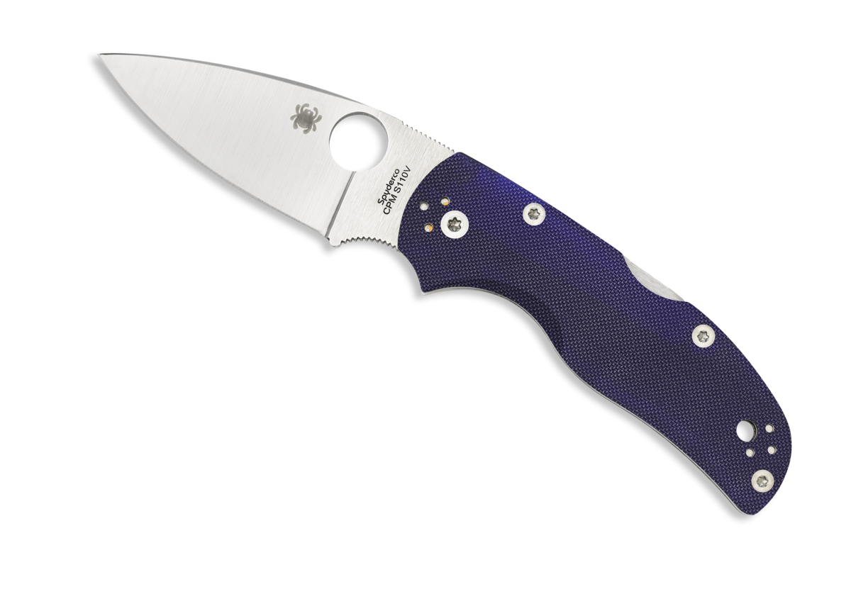 This Spyderco Knives Native 5 Lockback knife utilizes a 3" Locking Spear(w/Thumb Hole) blade. The blade material is CPM S110V Stainless Steel with Brushed finish. The handle is Midnight Blue G-10 with Pocket Clip and Lanyard Hole. It's around 4 inches long (folded/closed) and weighs approximately 3.5 ounces.