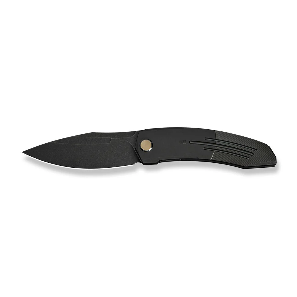 This WE Knife Co., Ltd Sine Wave Liner Lock knife utilizes a 4" Locking Drop Point blade with a flat grind, 4mm (0.16") thickness, swedge, and finger lever. The blade material is M390 Stainless Steel (58-60HRC) with a Black Stonewashed finish. The handle is Black Anodized 6AL4V Titanium with a right-carry tip-up Titanium pocket clip. It's around 4 7/8 inches long (folded/closed) and weighs approximately 5.0 ounces. Handcrafted in China, this knife comes complete with Limited Lifetime Manufacturer's Warranty, Storage Pouch and Box.