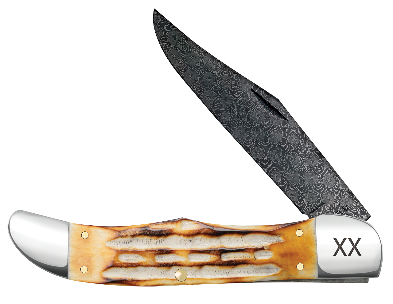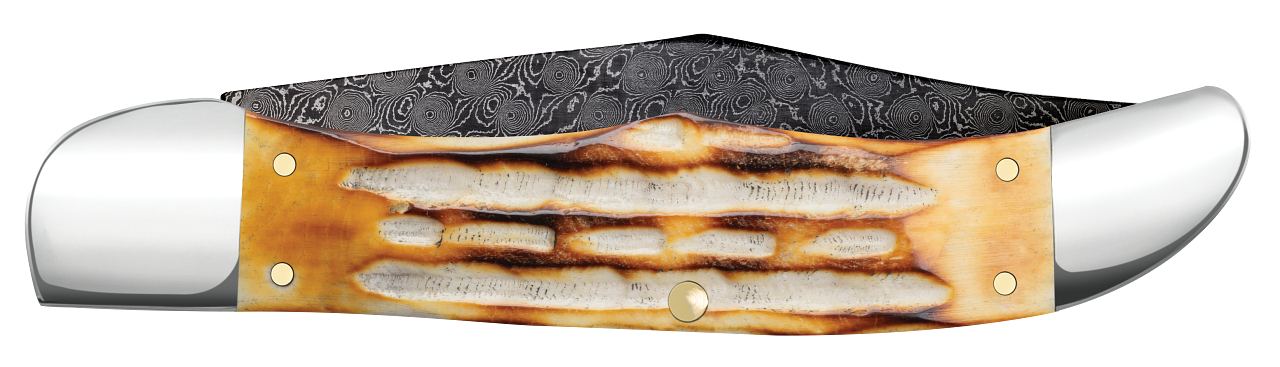 W.R. Case XX Knives Muskrat Jigged Burnt Natural Bone 27231 Damascus Pocket Knife