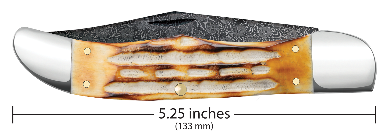 W.R. Case XX Knives Barlow Jigged Burnt Natural Bone 27232 Damascus Pocket Knife