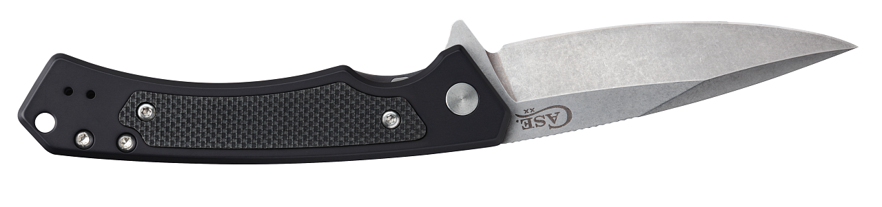 This W.R. Case & Sons Cutlery Co. Marilla Frame Lock knife utilizes a 3 1/2" Locking Drop Point blade with a plain edge, 4mm thickness and finger lever. Stamped with pattern number MARILLA CPM20CV, the blade material is CPM 20CV Stainless Steel with Stonewashed finish. The handle is Black Anodized...