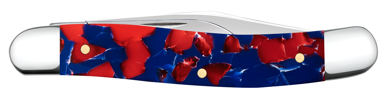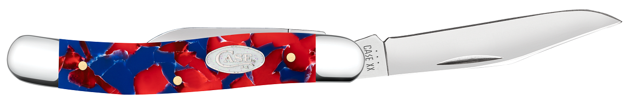 This W.R. Case & Sons Cutlery Co. Medium Jack knife utilizes a 2 1/2" Clip blade and 1 7/8" Pen blade. Stamped with pattern number 102087 SS, the blade material is Tru-Sharp Surgical Stainless Steel with a mirror-polished finish. The handle is smooth Freedom Kirinite with a White SparXX Oval Script Inlay shield. The bolsters are Highly polished Nickel Silver. It's around 3 3/8 inches long (folded/closed) and weighs approximately 2.2 ounces.