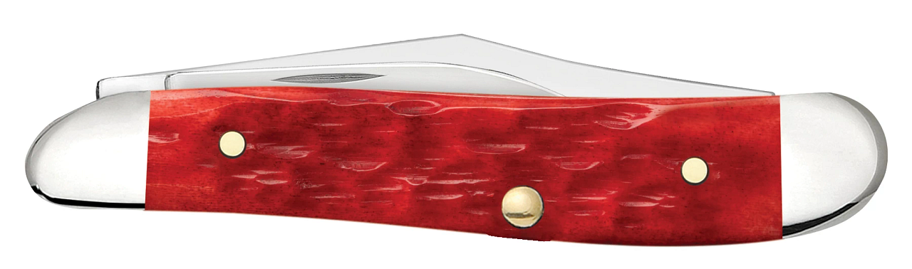 W.R. Case XX Knives Peach Seed Jigged Dark Red Bone Mini Copperlock Carbon Steel Pocket Knife 31954