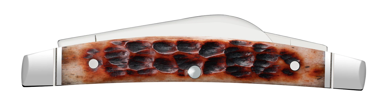 One of only 400 made! This W.R. Case & Sons Cutlery Co. Small Congress knife utilizes a 2 3/8" Sheepfoot Coping blade and 1 3/4" Pen blade. Stamped with pattern number 6268 SS, the blade material is Tru-Sharp Surgical Stainless Steel with a mirror-polished finish and etched with 'Case XX Select'. The handle is Rodgers jigged Molasses Bone with a Nickel Silver Case Select Inlay shield. The bolsters are Fluted Nickel Silver. It's around 3 1/8 inches long (folded/closed) and weighs approximately 1.6 ounces. The knife is presented with a Case Select Velvet Box.