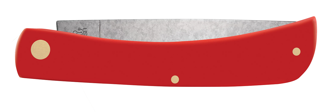 This W.R. Case & Sons Cutlery Co. Sodbuster knife utilizes a 3 3/4" Skinner blade. Stamped with pattern number 4138 CS, the blade material is Carbon Steel.Note: Carbon Steel is generally harder than stainless steel, this allows the blade to hold a sharper edge, longer. However, Carbon Steel will corrode/rust if it's not cleaned and oiled regularly. The handle is smooth Red Synthetic. It's around 4 5/8 inches long (folded/closed) and weighs approximately 3.4 ounces.... Read Less