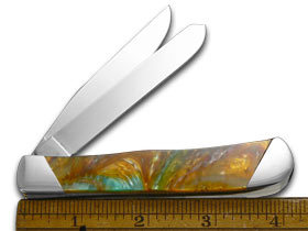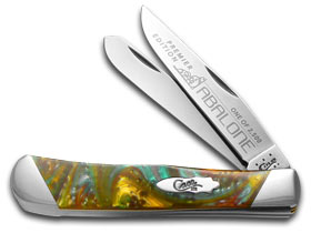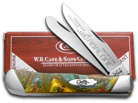 One of only 2500 made! This W.R. Case & Sons Cutlery Co. Trapper knife utilizes a 3 1/4" Clip blade and 3 1/4" Spey blade. Stamped with pattern number 9254 SS, the blade material is Tru-Sharp Surgical Stainless Steel etched with "Premier Edition, One of 2500" and Genuine Corelon graphics. The handle is Abalone Corelon with a Bombshell Nickel Silver Case XX Inlay shield. The Slant bolsters are Nickel Silver. It's around 4 1/8 inches long (folded/closed) and weighs approximately 3.7 ounces.